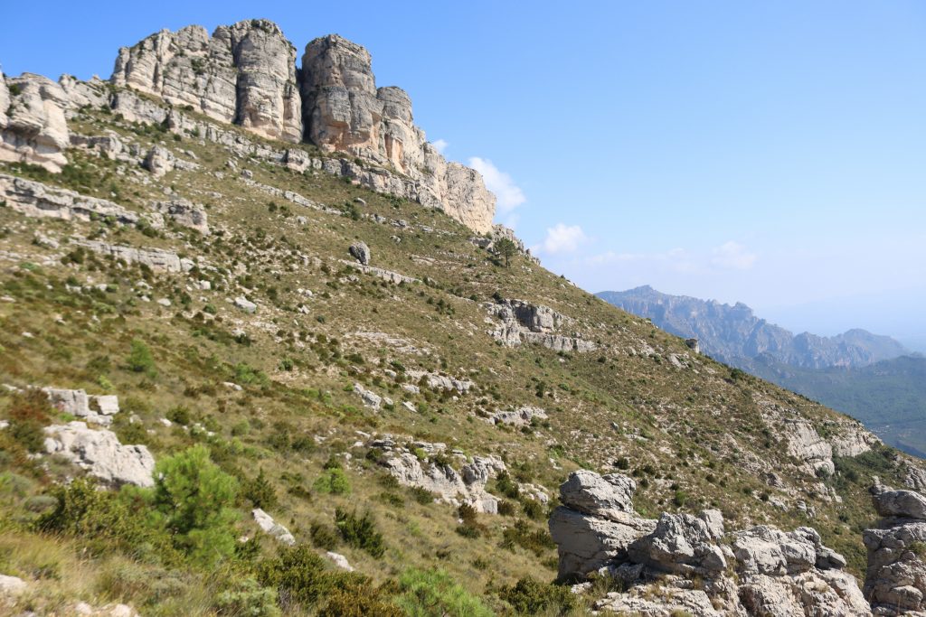 Die “Moleta de Alfara”, ein intereesanter Kalkblock mit 860 m Höhe, bildet das herausragende Landschaftselement hier.